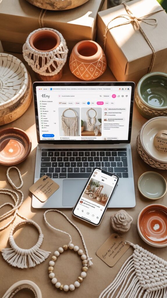 Etsy is perfect for handmade decor and jewelry, while Instagram, Pinterest, and TikTok are great for showing off your creations.