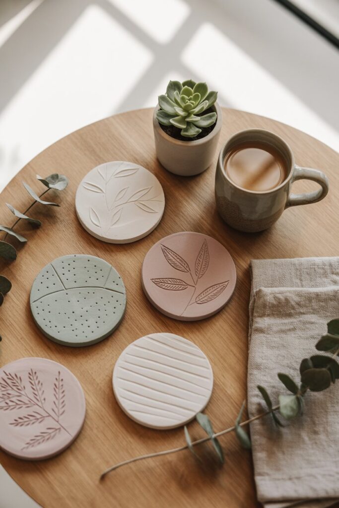 Making air-dry clay coasters is one of those simple, calming crafts that lets you be creative without any pressure. You can try one style or combine a few to create a whole themed set.
