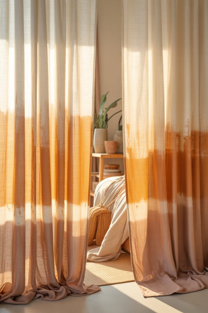 Dip-dyeing just the bottom portion of the curtain creates a subtle gradient that feels artistic without being overwhelming.