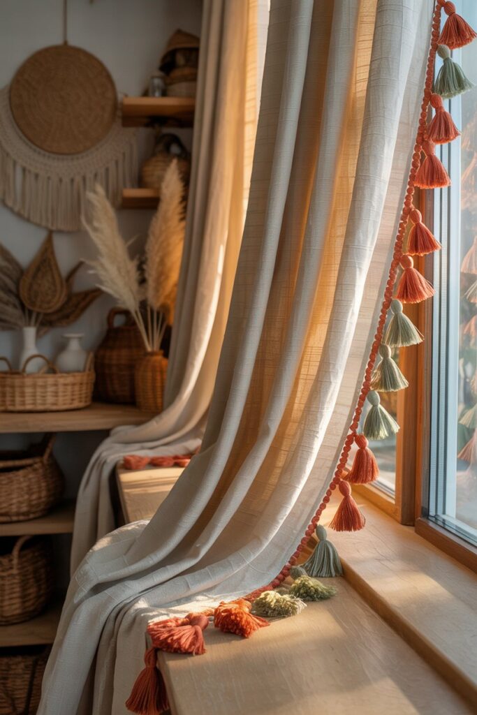 Adding tassels along the edges instantly gives plain curtains a playful, bohemian finish.