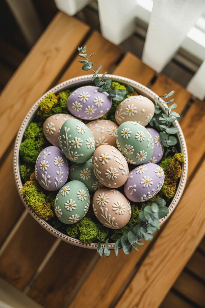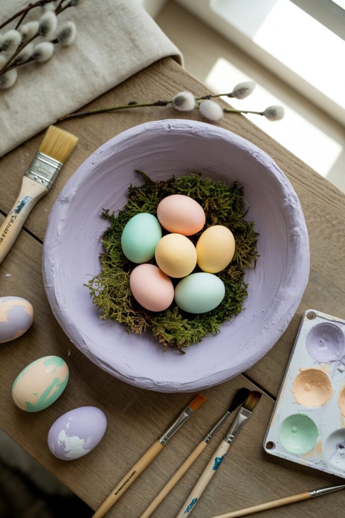 Fill a decorative bowl with these painted eggs and add a little decorative moss or greenery to create a beautiful Easter centerpiece.