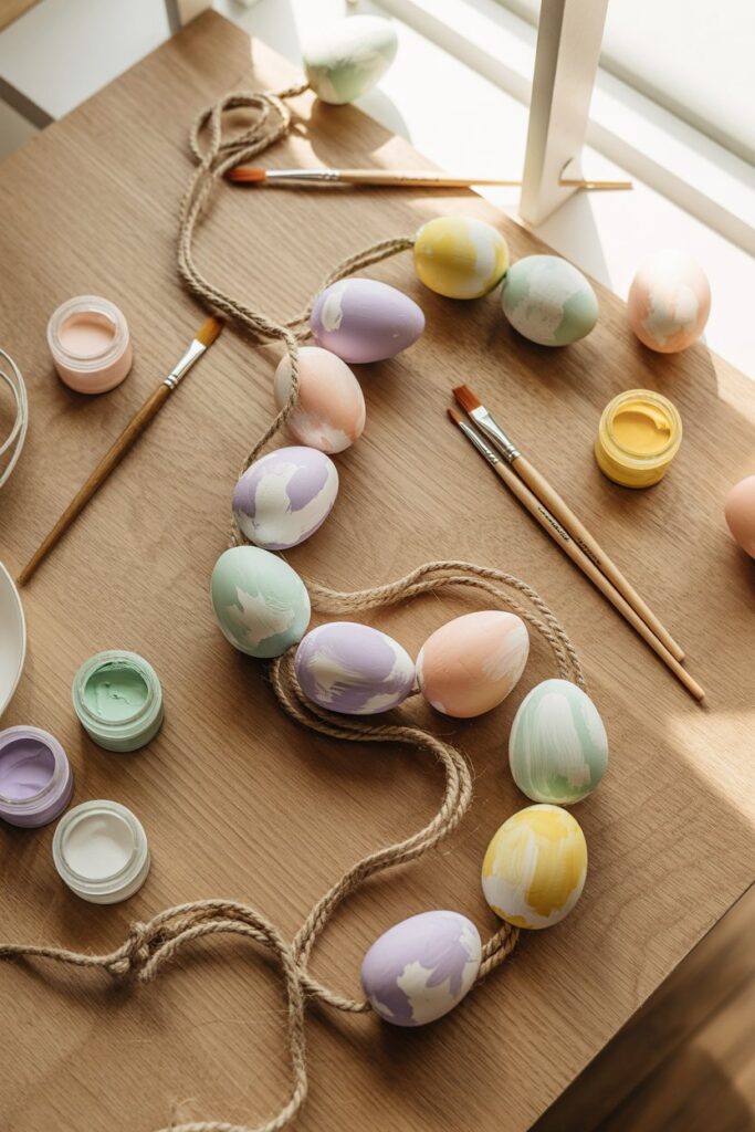 After the paint dries, thread twine or ribbon through the holes to connect all the eggs and create your garland.