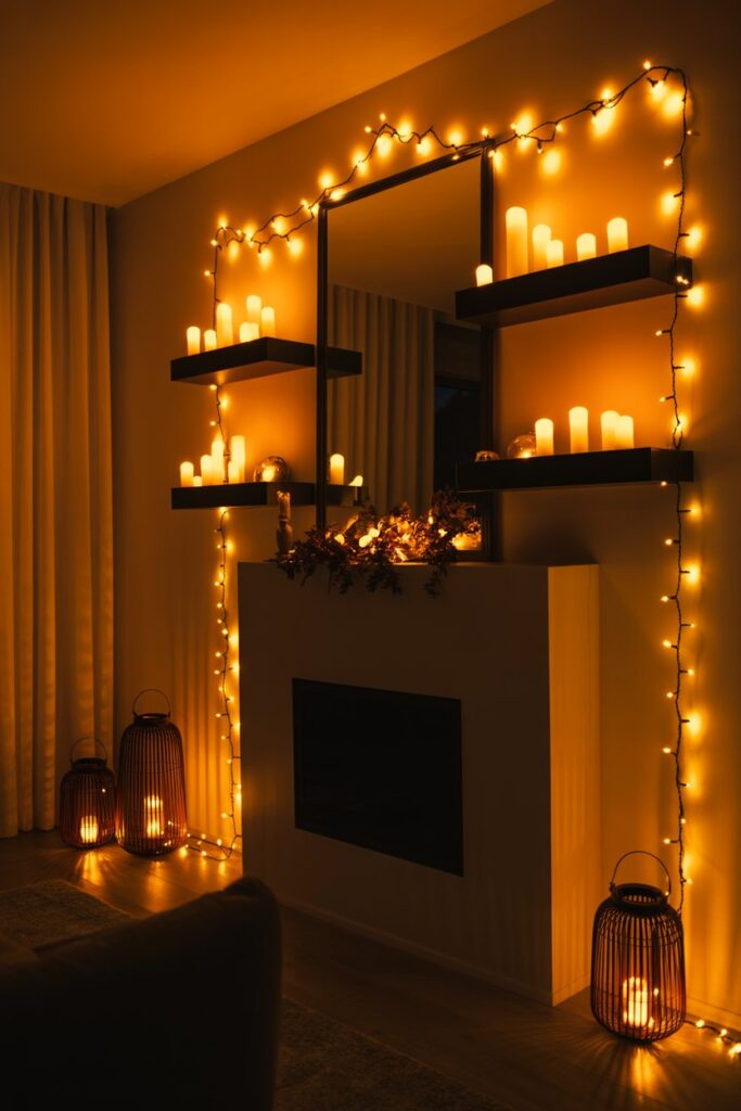 For an easy, budget-friendly touch, add tea lights to mason jars or small glass holders to create a cozy, magical atmosphere.