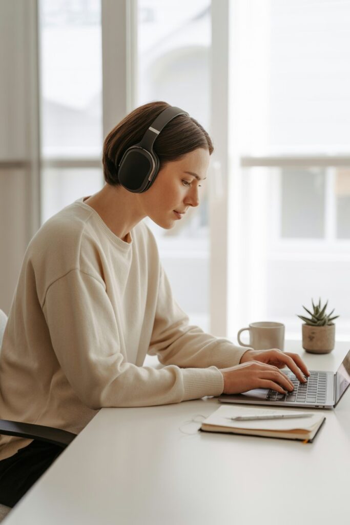 How to achieve this style: Use headphones, quiet background music, or white noise to minimize distractions. Remove unnecessary items from your desk, keep devices on silent or out of reach, and create a workflow that separates work and non-work tasks.