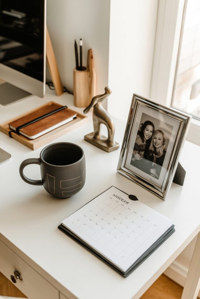 I added small, meaningful items like a favorite mug, a desk calendar, or a tiny sculpture. These objects make the space feel mine.