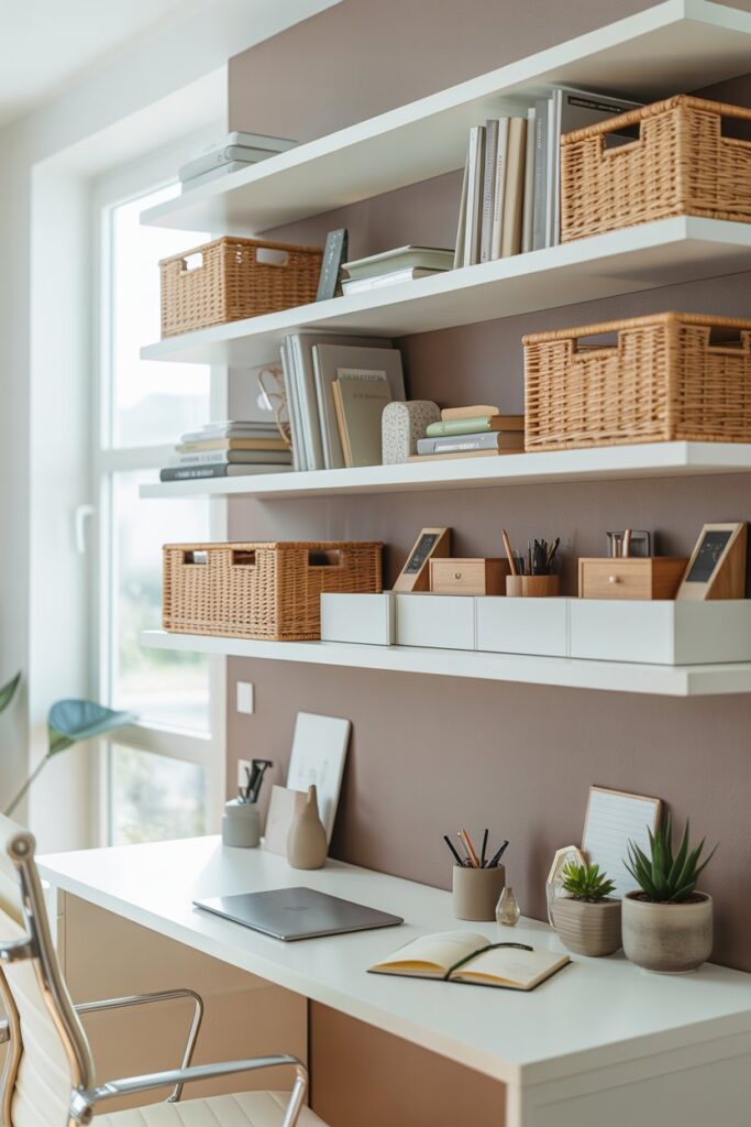 Storage is more than hiding clutter. I added shelves, organizers, and small baskets to my office. Now everything has a home, and I can keep frequently used items within reach.