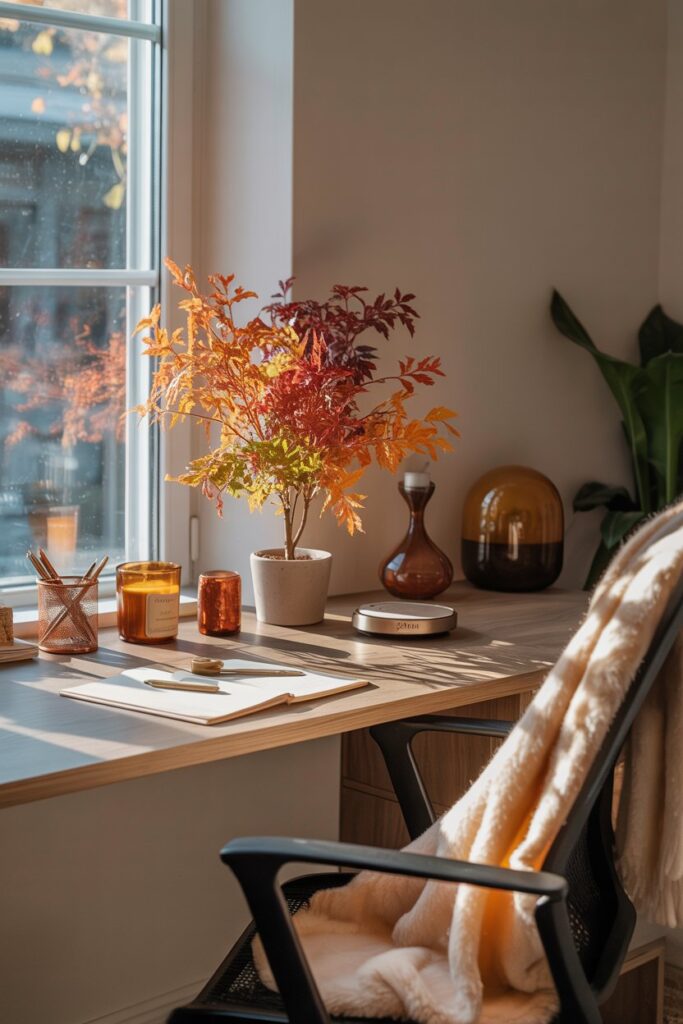 Adding plants or natural elements completely changed how my office feels. A small succulent on my desk, a vase with fresh flowers, or even a bowl of decorative stones makes a huge difference.