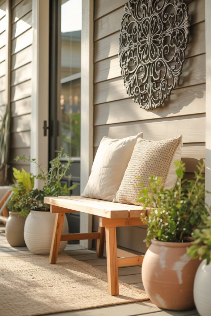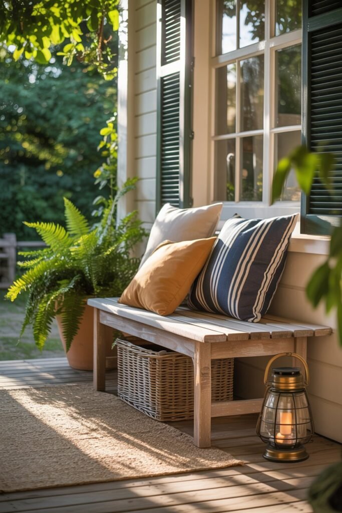 Even a tiny porch can benefit from a cozy seat. I love having a small chair or bench where I can enjoy my morning coffee or watch the kids play outside.