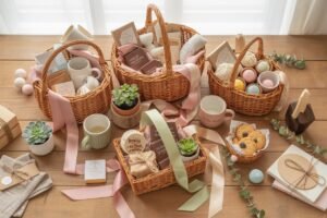 You can swap materials with the seasons, like fresh greenery in spring, bright flowers in summer, warm leaves in autumn, or subtle evergreens in winter.