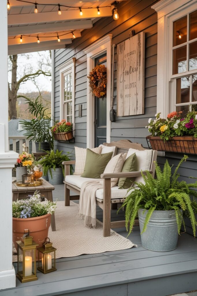 String lights, lanterns, or a small lamp can instantly add charm and functionality without overwhelming the porch.