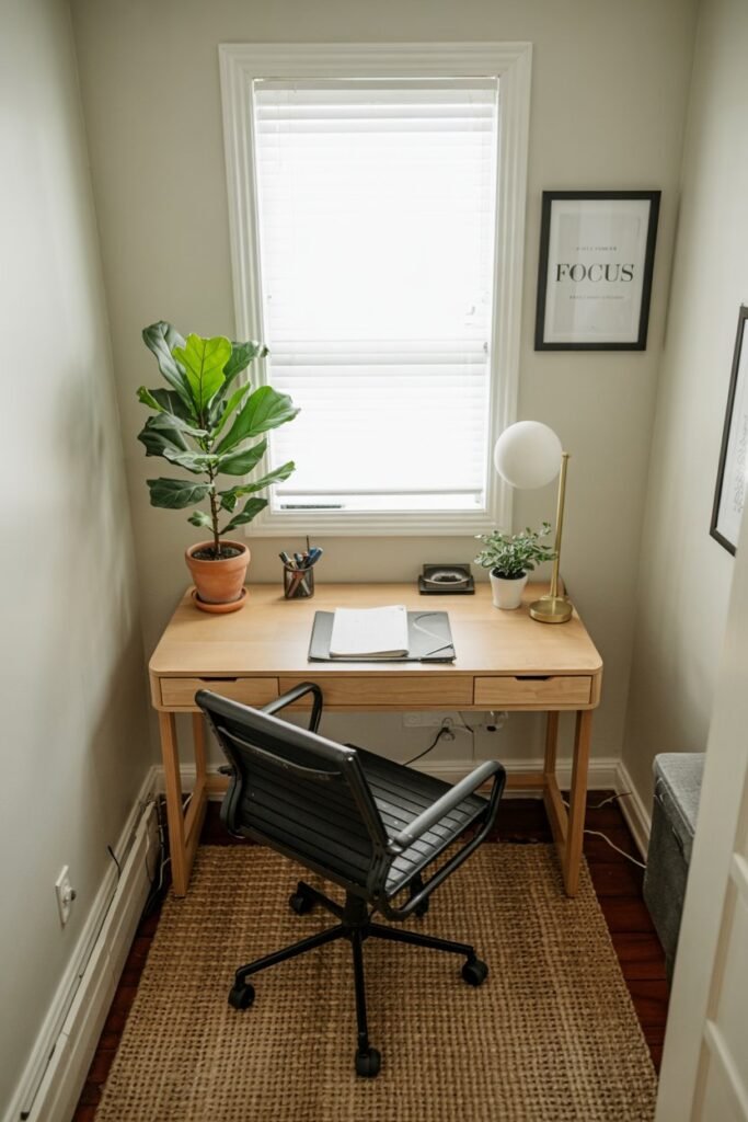 The key is to focus on the essentials: a desk that fits your space, a comfortable (but not oversized) chair, and maybe one streamlined storage piece if you really need it. The less cluttered the room feels, the more productive and calm you’ll feel working in it.