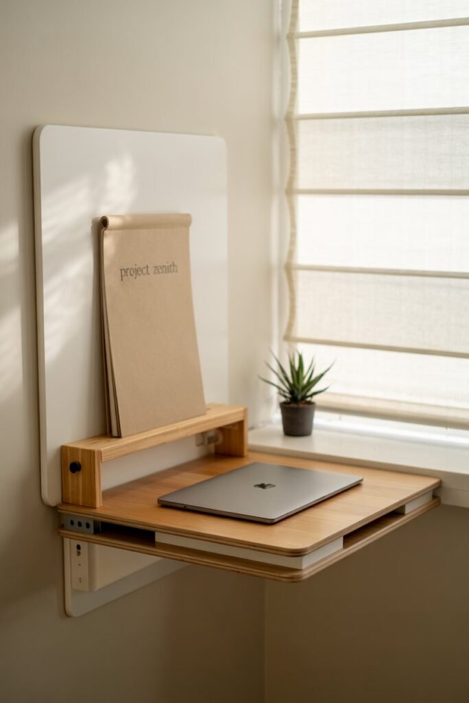 Fold-Out Wall Desk — folds flat when not in use, perfect for tight spaces.