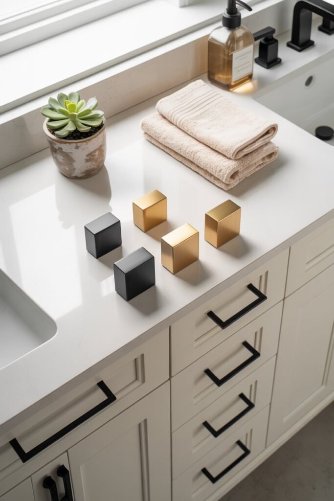 - Stylish cabinet knobs or handles (matte black or brushed gold are trending)