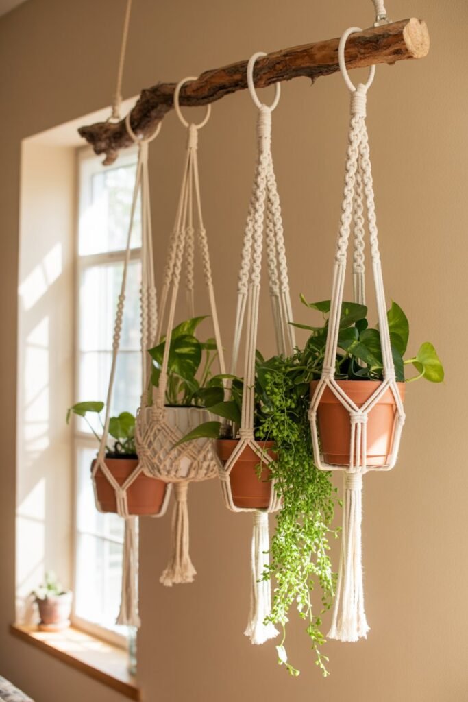 How to Make It: Learn basic knots (square knot, half knot) and combine them into a unique design. Hang it on a wooden dowel or even a natural branch.
