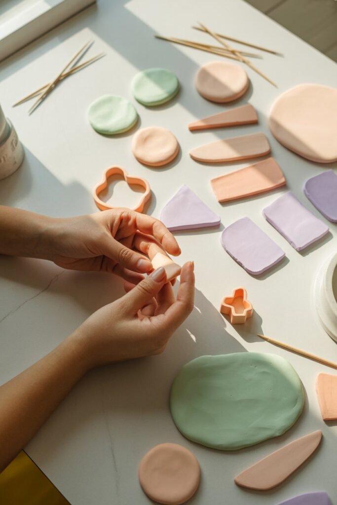 - Press cookie cutters or molds into the clay to create clean geometric shapes