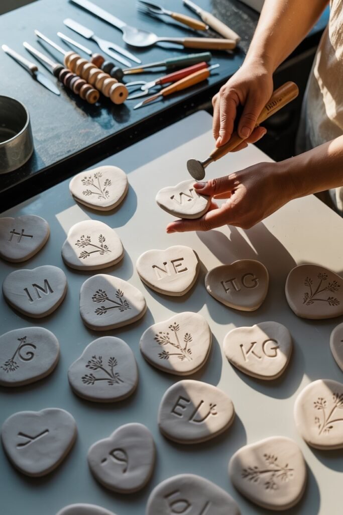 - Use sculpting tools, stamps, or a toothpick to carve initials, symbols, or patterns