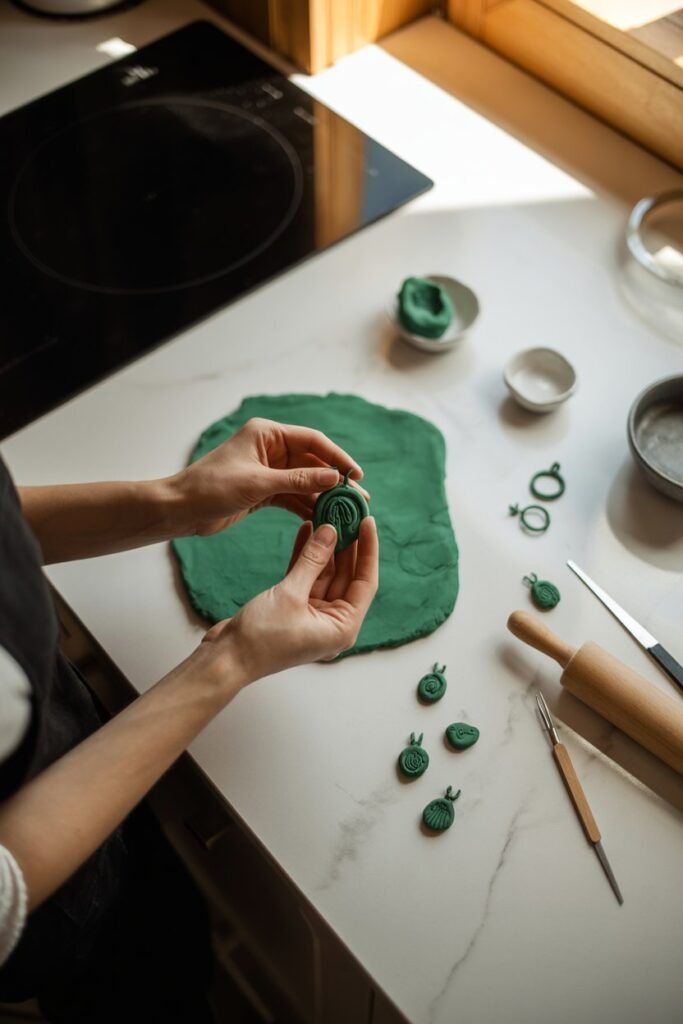 - Cut or shape the clay into earrings, pendants, rings, or beads