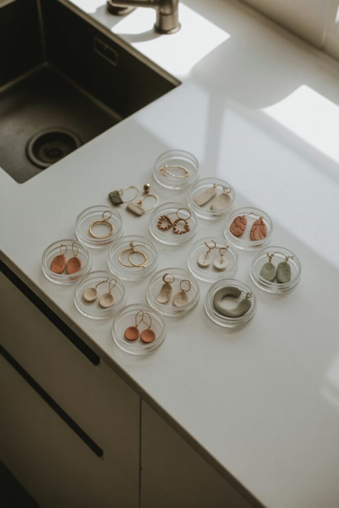 Proper care keeps your clay jewellery looking great. I make sure every piece is fully dry before storing it in airtight containers to protect it from dust and moisture.
