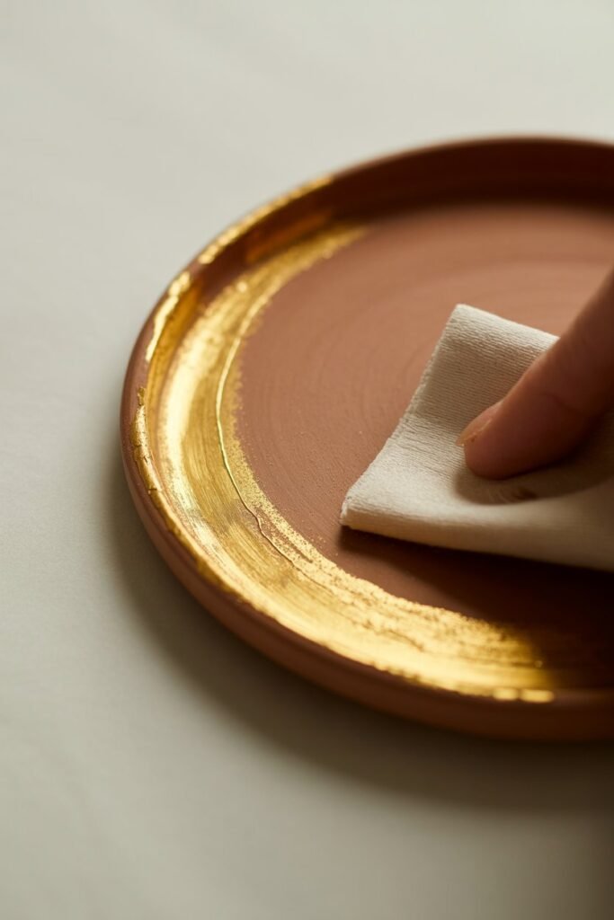 When using Rub ‘n Buff or metallic paints, start with a subtle layer and build gradually for a delicate, elegant rim. Patience is key; each step benefits from a slow, intentional approach.