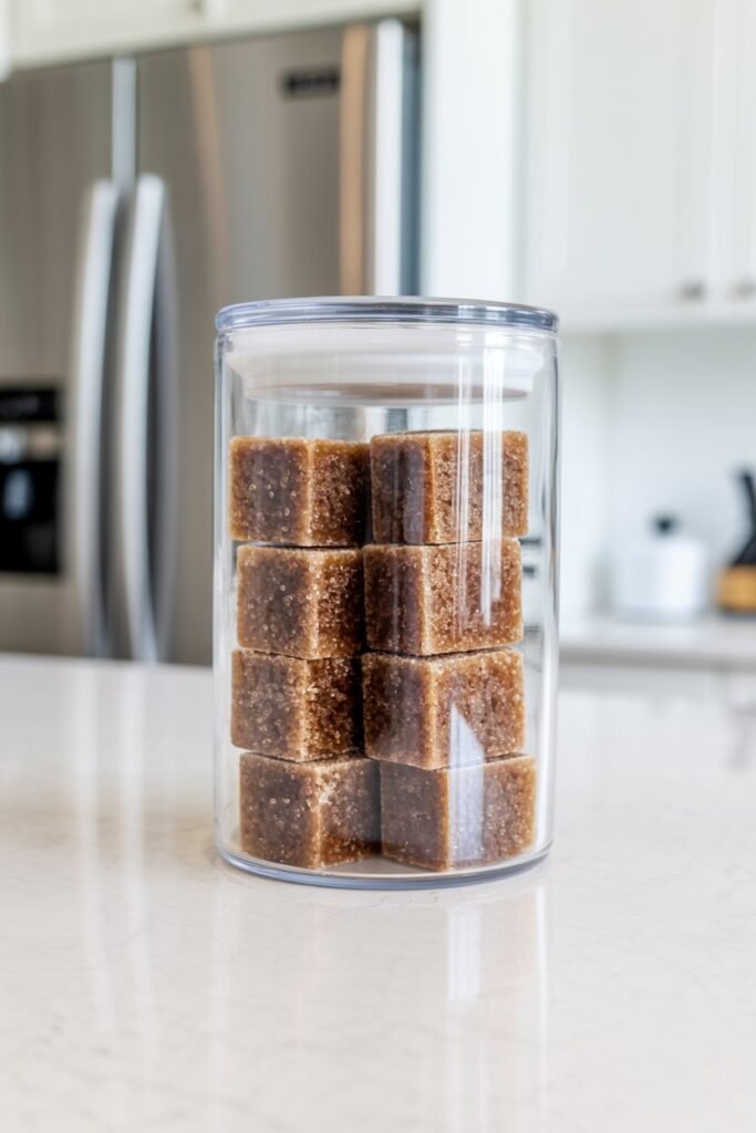 Place the molds in the refrigerator for 30–60 minutes. Once hardened, gently remove the cubes. Store them in an airtight container in the refrigerator to maintain firmness.
