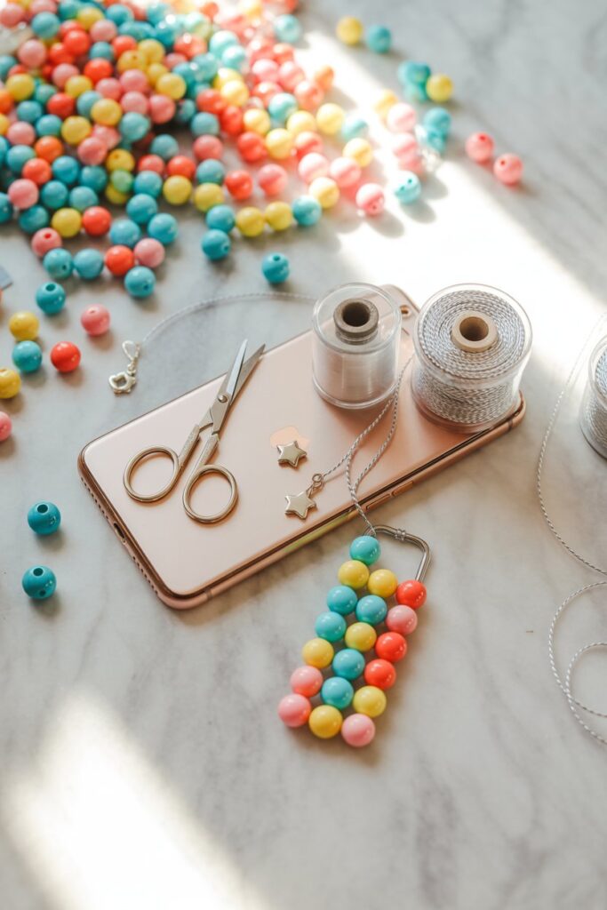 Create a personalized phone charm in under an hour using colorful beads and simple materials.