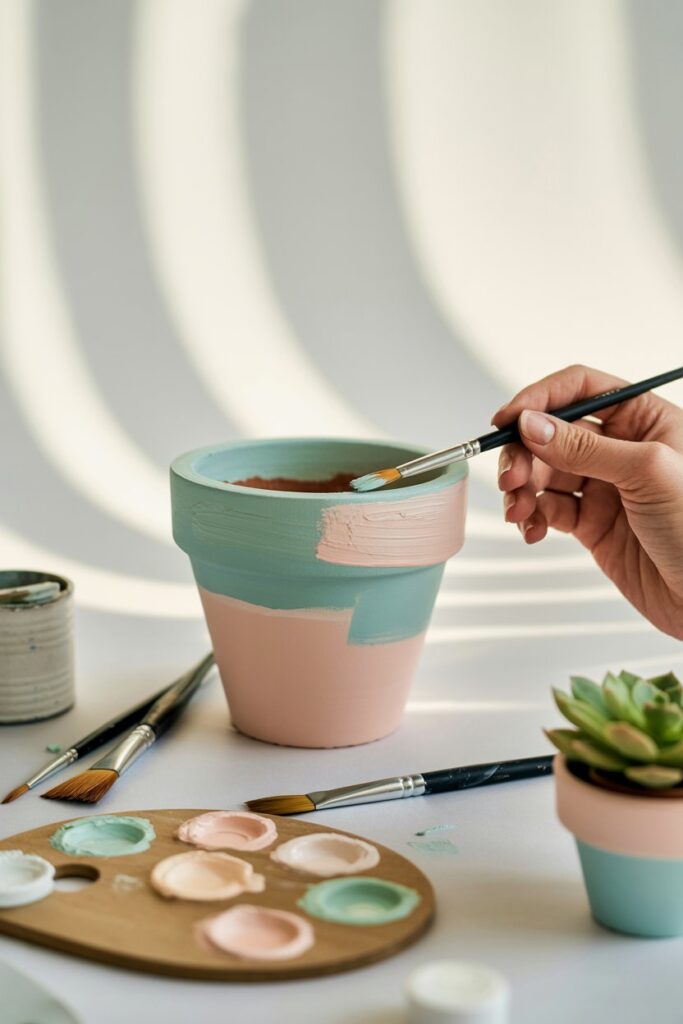 Keep it simple and embrace imperfections. Abstract patterns, bold color blocks, or playful designs make even a basic pot look sophisticated and stylish.