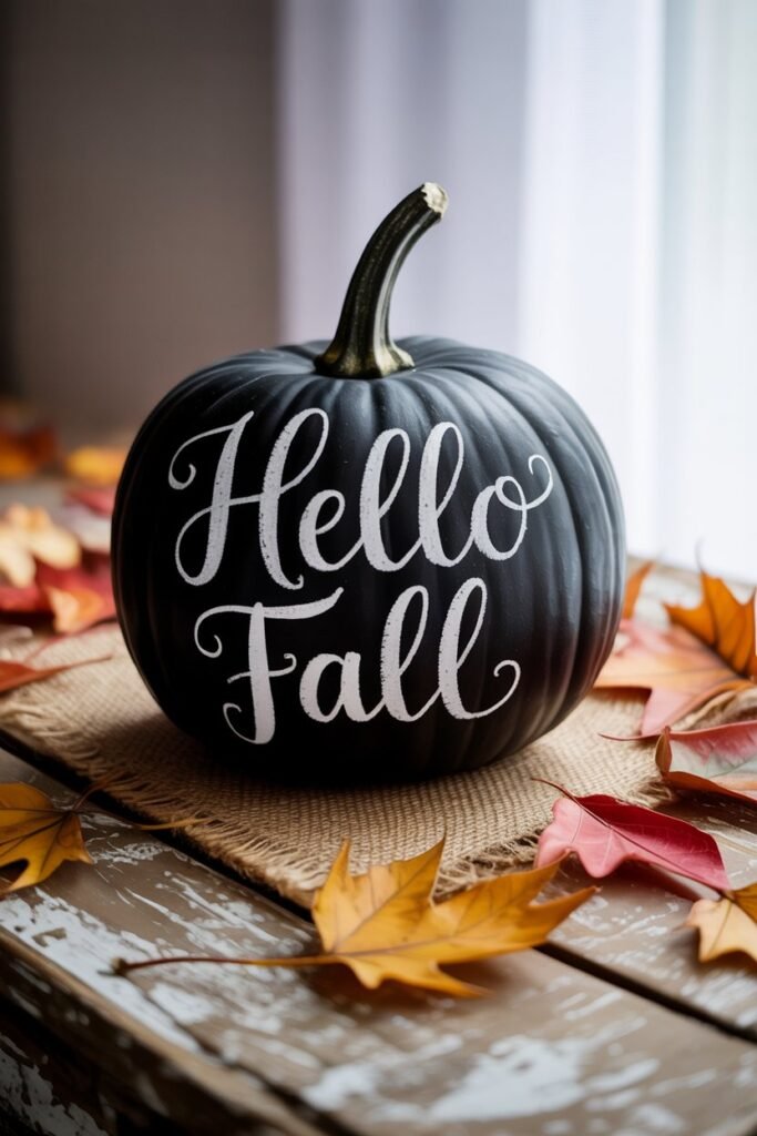 Keep it simple but chic by adding black lettering or quotes on your white pumpkin.
