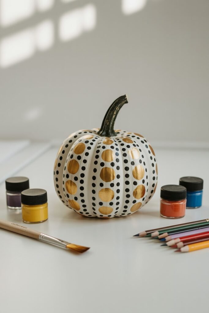- Paint black, gold, or pastel polka dots all over the pumpkin.