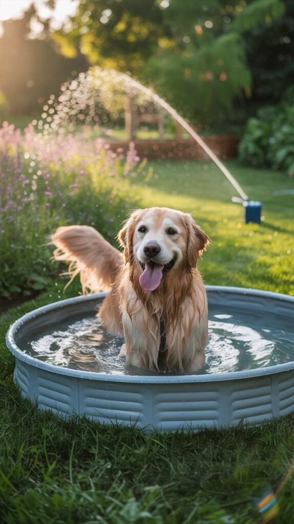 - Install a shallow dog pool or splash pad.