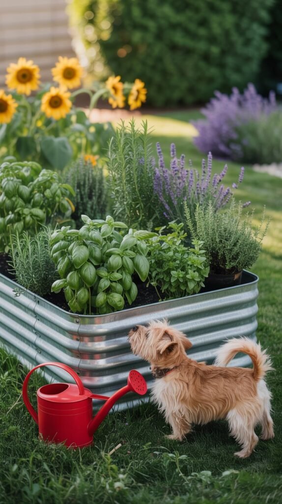 - Stick to pet-safe herbs and flowers like basil, rosemary, and thyme.