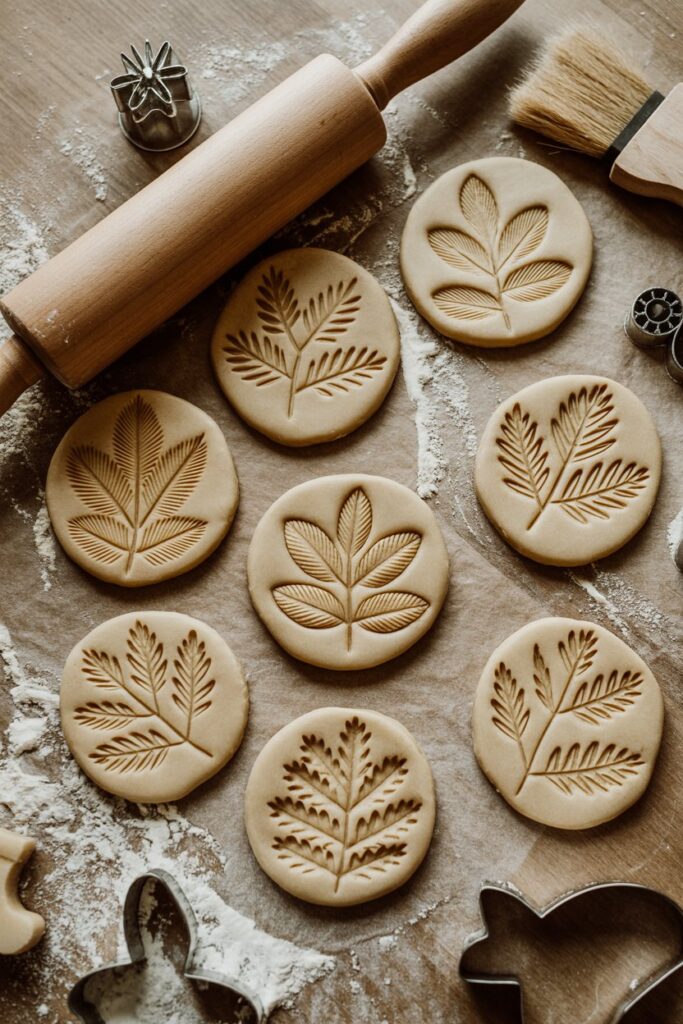 I sometimes press stamps, cookie textures, or even natural elements like leaves into the dough to add patterns. This is a great way to make each ornament unique.