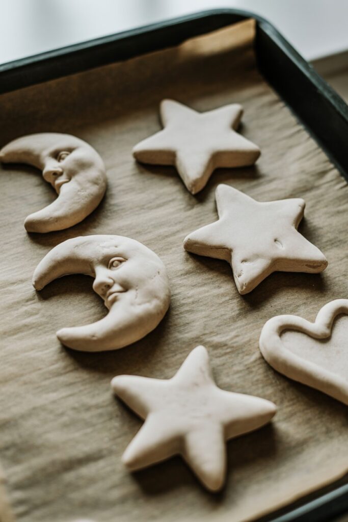 Once your ornaments are shaped, the next step is to harden them so they last. You can either bake them in the oven or air-dry, depending on your preference and time.