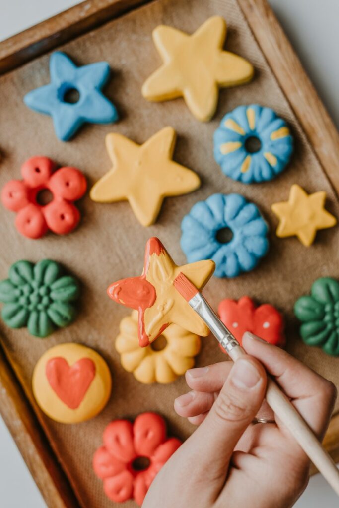 After your salt dough ornaments are fully dried or baked, it’s time to bring them to life with color, shine, and fun details. I love this part because it lets you get creative and make each ornament unique.