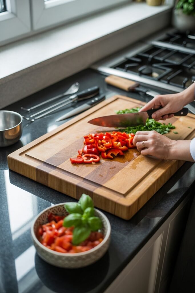 Tip: Choose a cutting board with built-in storage for knives or utensils to keep your counter clear.