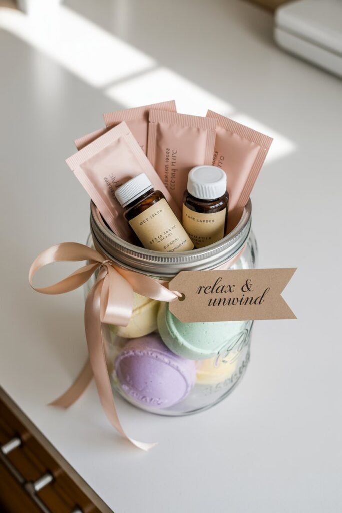 - Decorate with a soft satin ribbon and label it “Relax & Unwind.”