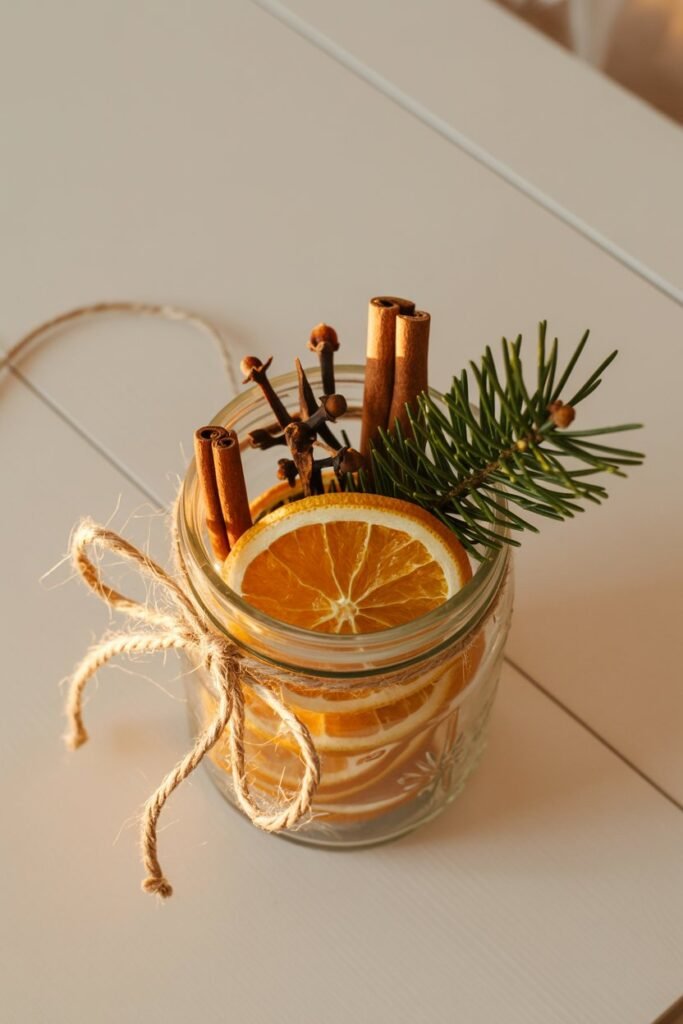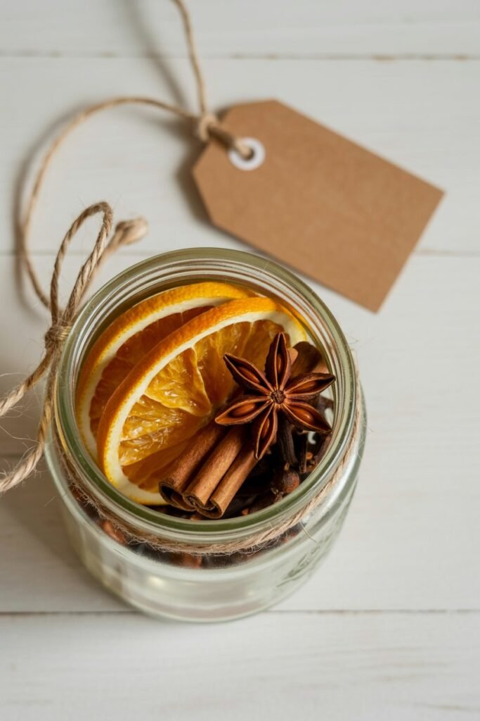 - Optional: Tie a small bundle of cinnamon sticks or pine to the lid for extra charm.