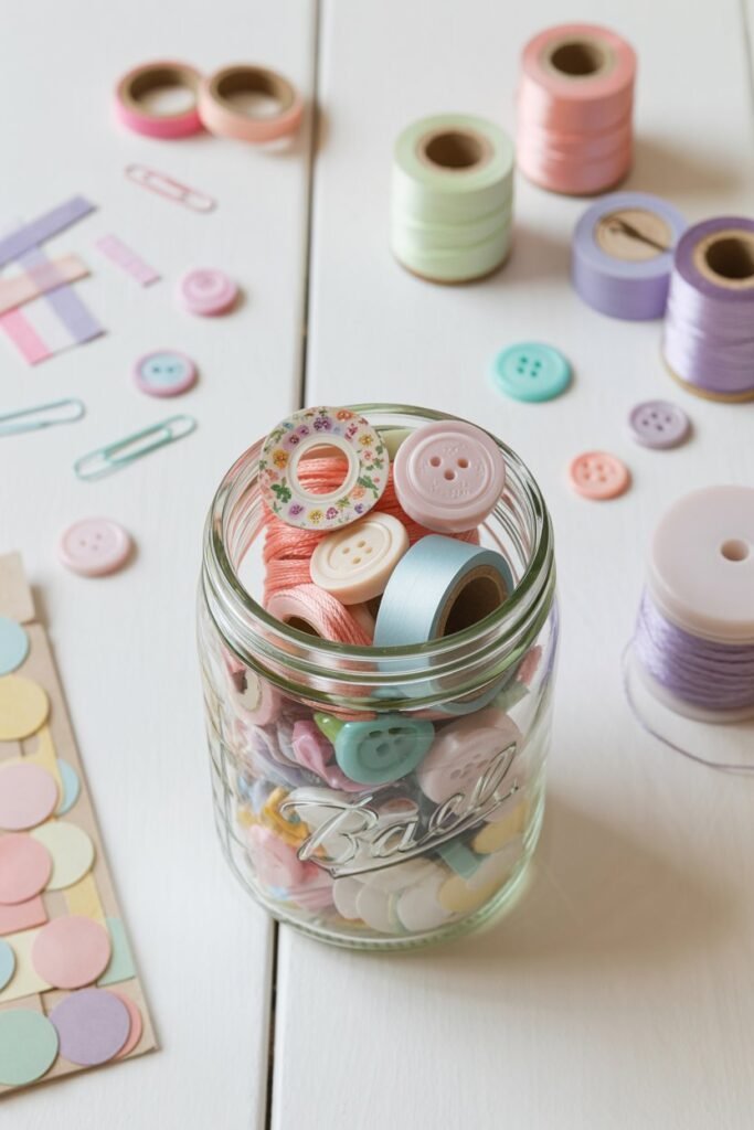 - Fill a jar with small crafting supplies like thread, washi tape, stickers, buttons, or mini scissors.