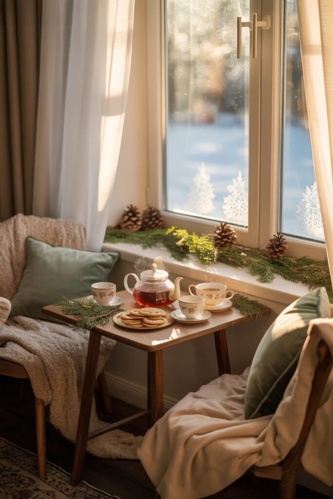 If you want to go a step further, small touches like a vase of flowers, pinecones, or evergreen sprigs bring seasonal charm without much effort.
