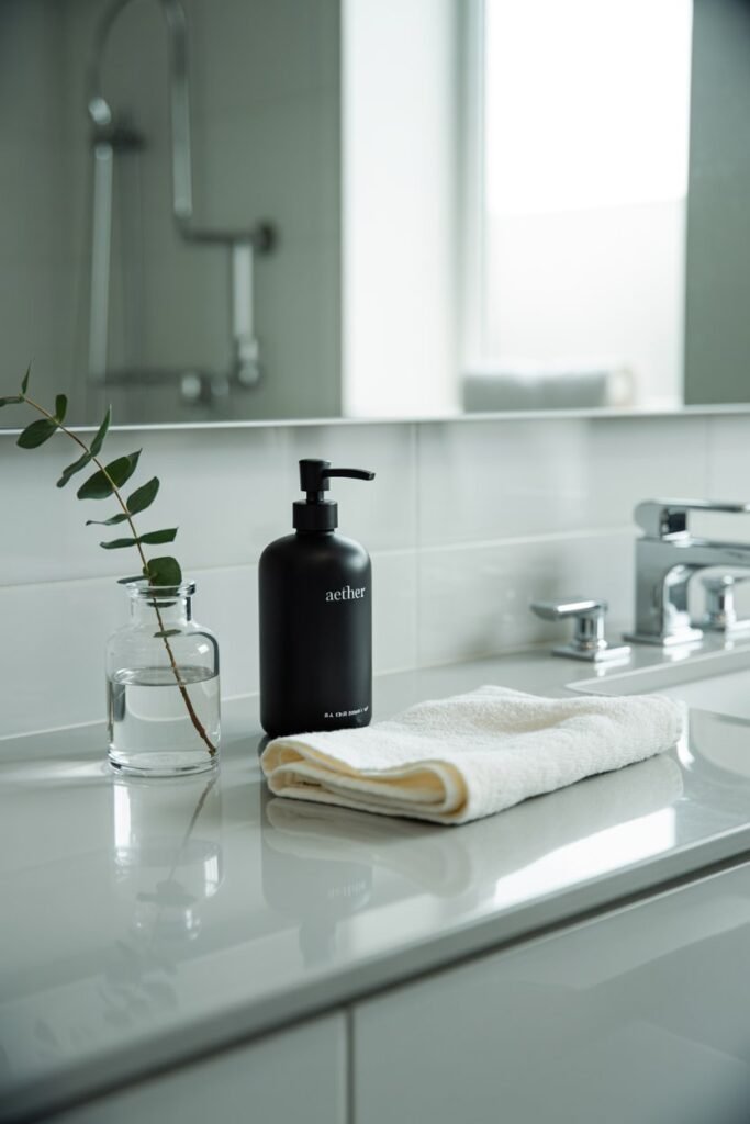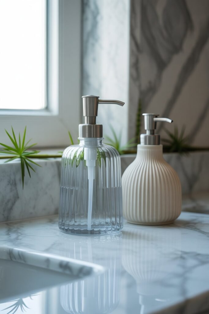 Instead of cluttering your countertop with mismatched plastic bottles, upgrade to a sleek glass or ceramic soap dispenser. It instantly makes your bathroom look more polished while still being super practical.