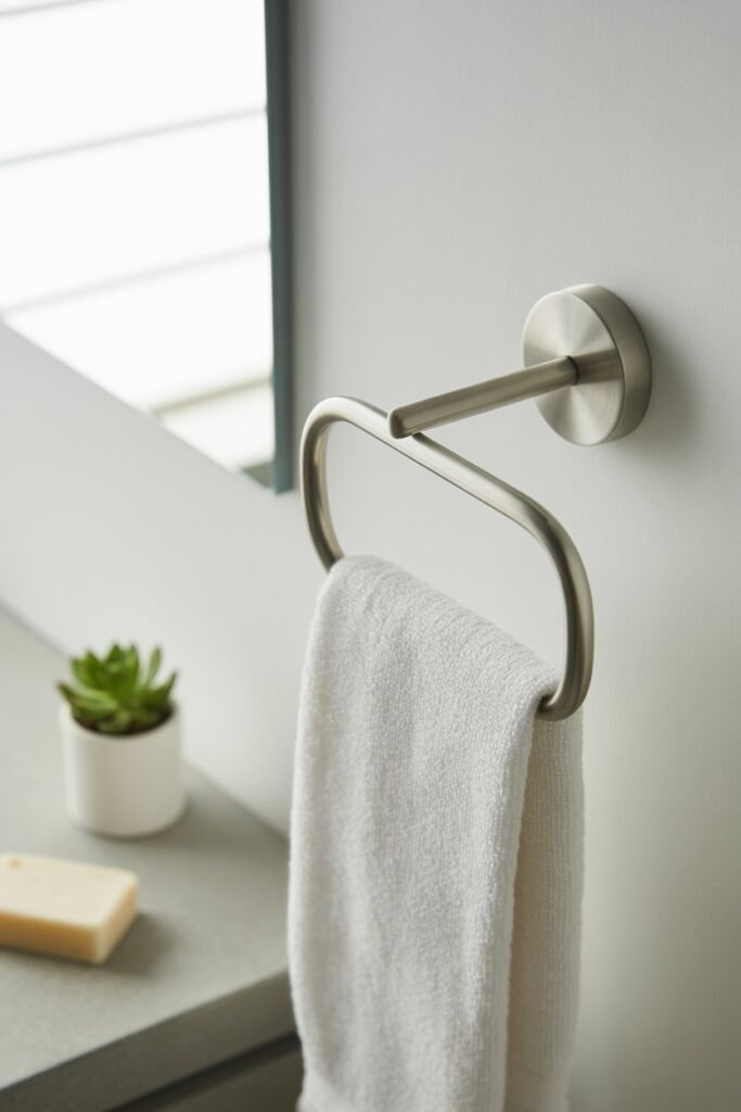 Tip: Choose a sleek, minimalist design (like matte black, chrome, or brass) that ties in with your bathroom’s hardware for a cohesive look.
