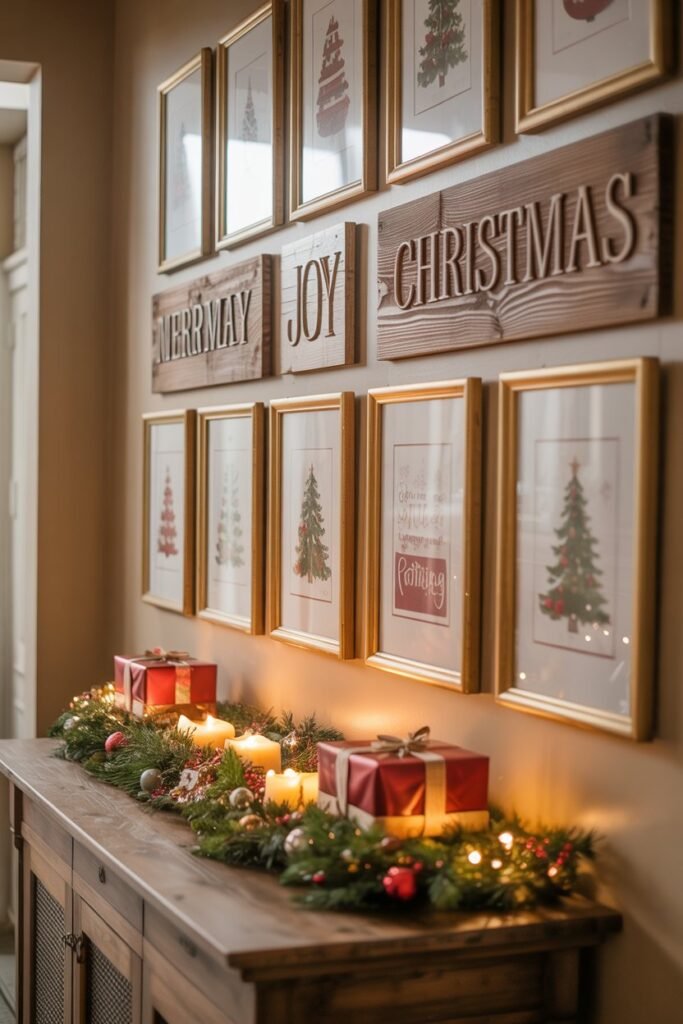 - “Joy,” “Merry Christmas,” or “Season’s Greetings” framed prints