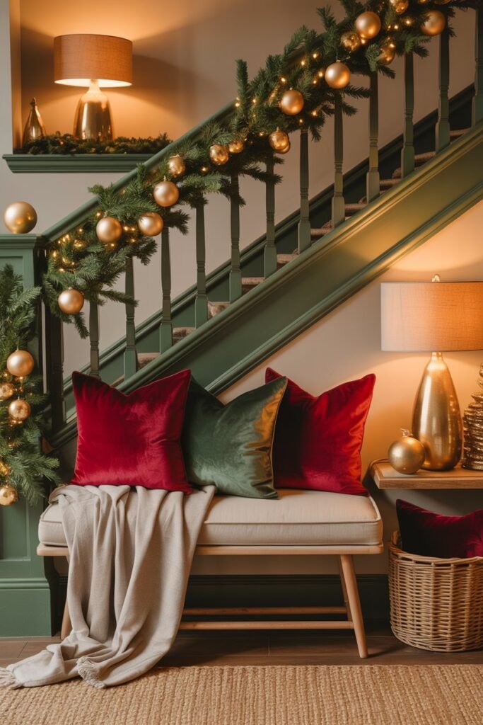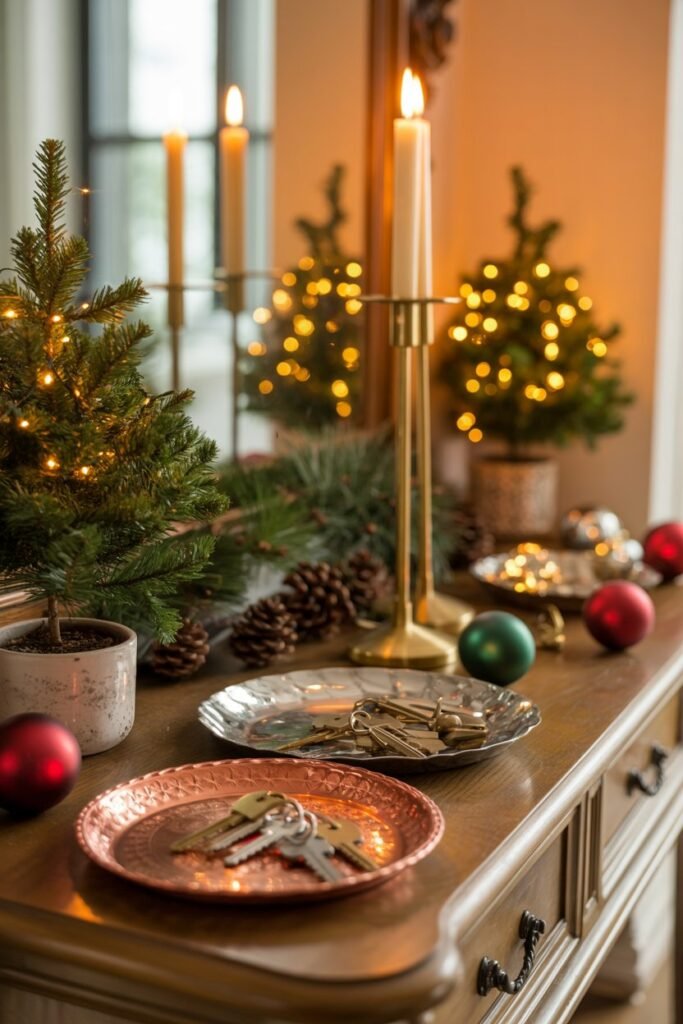 Pro tip: Repeat colors in throws, ornaments, candles, and pillows to create a polished and cohesive entryway.