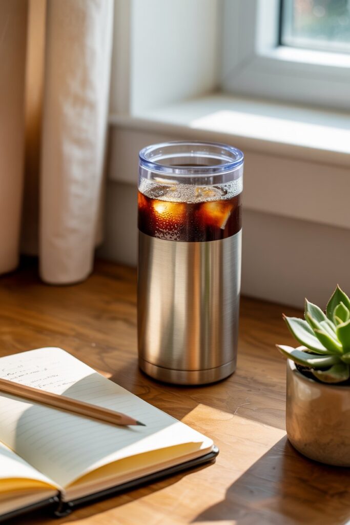 A durable, insulated tumbler keeps drinks at the perfect temperature for hours, whether it’s a hot morning coffee, a soothing cup of tea, or a refreshing iced beverage on a warm day.