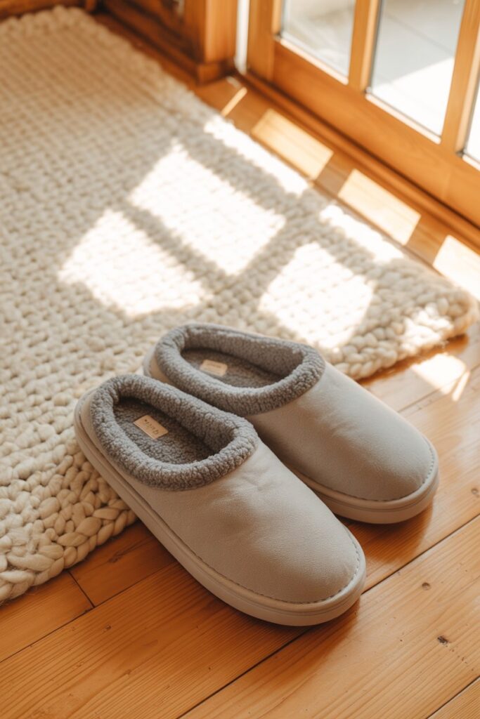 A soft, plush pair of slippers is a cozy treat that keeps her feet warm and comfortable throughout the day.