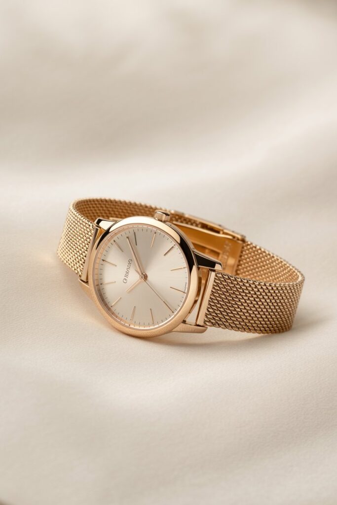 Choose a watch with an adjustable band so it’s ready to wear straight out of the box. Consider subtle details like minimalist dials or mixed textures for an extra touch of style.
