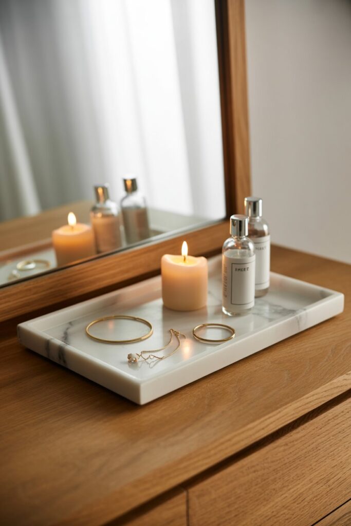 The tray adds both functionality and a touch of elegance to her self-care routine.