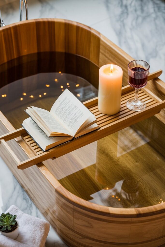 A bathtub tray is a simple way to transform an ordinary bath into a luxurious, spa-like experience.